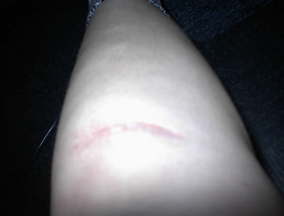 finally, this is not my biggest scar, but it is my newest and therefore most distinct. it occured in december of 2002.
