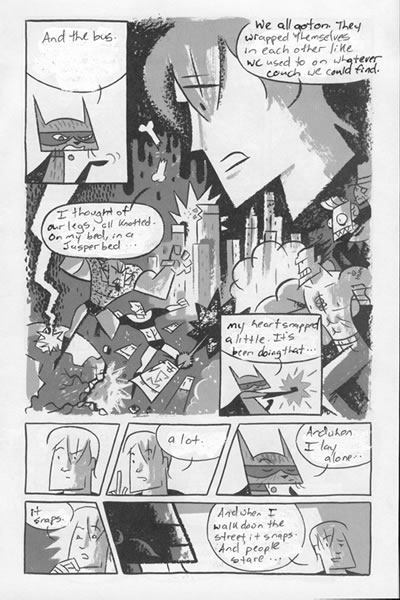 Write a letter to somebody you love or miss dearly by whiting out the speech balloons of a comic book and inserting your own words. What you write should have nothing to do with the pictures of the comic book. Send your letter to that person in the mail, but before you do so scan or take a picture of your favorite page and post it on LTLYM.
